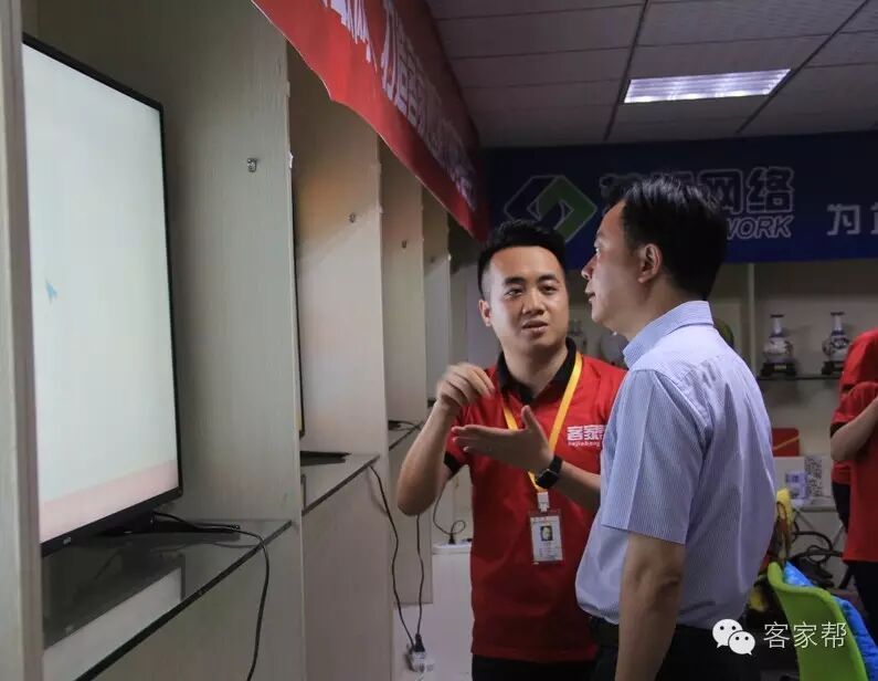 谭市长一行抵达客都艺博城首层——梅州市客家帮实业有限公司后,客家帮CEO陈科明及各部门负责人向谭市长一行介绍客家帮的公司概况,谭市长对我司发展方向及工作表示肯定和鼓励。
